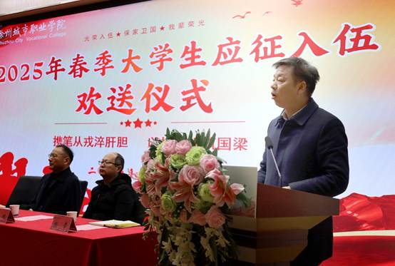 欢送会在庄严的气氛中拉开序幕。学生处副处长田青青宣读了2025年春季入伍学生名单及参军去向,并向入伍学生表示祝贺。