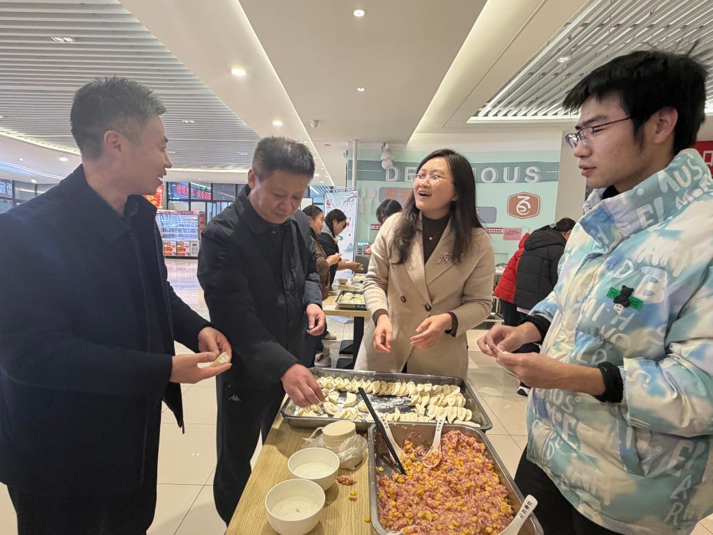 冬至将至,寒意渐浓,校园里却暖意融融。为弘扬中华传统文化,丰富校园文化生活,营造温馨和谐的校园氛围,12月19日,学校在食堂举办“冬至包饺子”主题活动。校党委委员、副校长孙静,校党委委员、学生处处长杨如江、总务处处长蒋峰等相关人员与100余名学生齐聚一堂,以饺为媒话温情,以劳育心促成长。