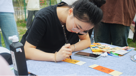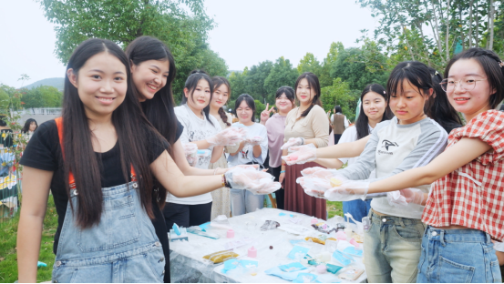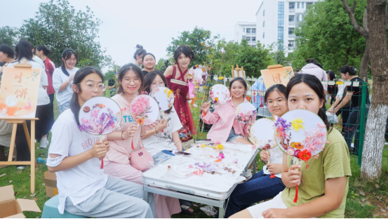 活动现场人头攒动,气氛热烈。活动共设置了汉服体验区、DIY制作区、游戏区和古筝琵琶笛子演奏区四个区域。在志愿者的引导下,同学们不仅可以体验投壶、猜灯谜、蹴鞠、捏面人等传统民俗项目,还可以亲手制作灯笼、书签、月饼、团扇……。同学们在游园的过程中尽情享受着节日的快乐,玩得不亦乐乎,欢声笑语不断。