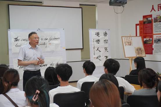 讲座中,曹士东从中华法系的深厚根基讲起,回溯商鞅变法开创成文法体系的里程碑意义;阐释法律与传统书法艺术的交融,展现了法治权威独特的文化载体;聚焦当代《职业教育法》的实践,解读其保障公民技能发展权、确立职业教育“类型教育”地位的时代价值。最终,讲座落点于习近平法治思想的核心要义,曹校长强调其作为全面依法治国根本遵循的地位,深入剖析了“坚持党对全面依法治国的领导”、“坚持以人民为中心”等精髓,以及统筹推进国内法治与涉外法治、推动国家治理现代化的深远意义。整场讲座清晰勾勒出法治在中国从文化传承到权利保障,再到时代创新的壮阔历程。