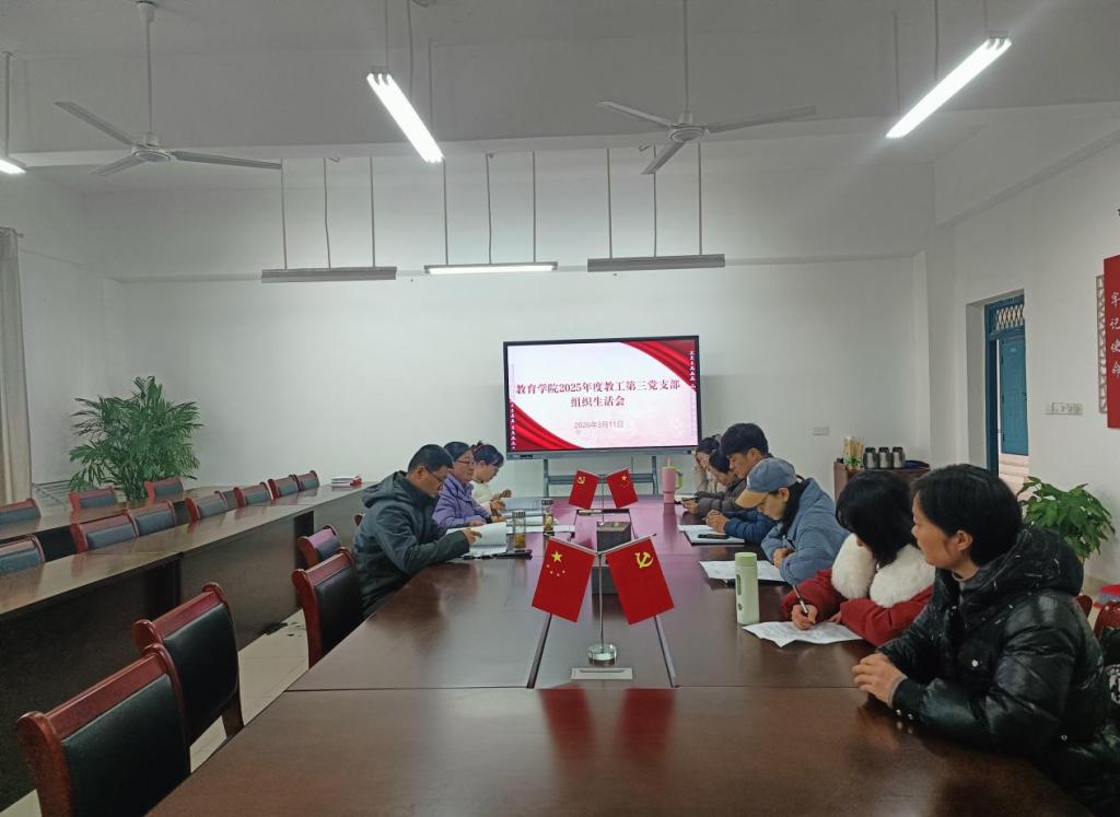 为深入学习贯彻习近平新时代中国特色社会主义思想,切实加强基层党支部建设,严肃党内政治生活,强化党员党性修养。教育学院教工第二党支部于3月11日下午在行知楼2202会议室开展2025年度组织生活会暨民主评议会。会议由支部书记余红蕾主持,支部全体党员参加了此次会议。会议开始,余红蕾领学《习近平关于树立和践行正确政绩观论述摘编》。在全党开展树立和践行正确政绩观学习教育,是贯彻落实党的二十届四中全会战略部署、确保...