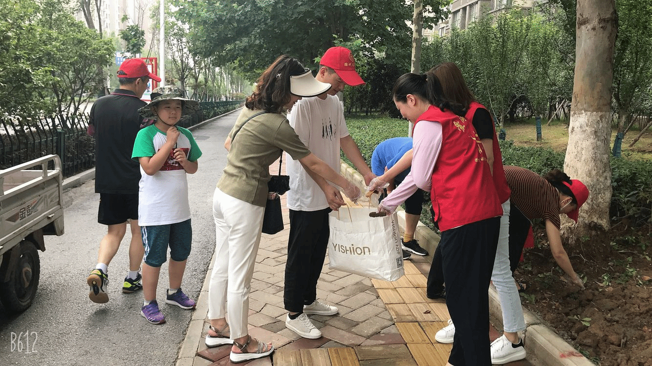 党员志愿者们身着志愿者服装或绶带,佩戴党员徽章“亮身份”,手持清洁工具,沿着小区道路两旁的绿化带,捡拾烟头、垃圾,清除绿化带中杂草杂物;引导居民共同美化家园、共同守护家园,自觉养成健康卫生的文明生活方式。