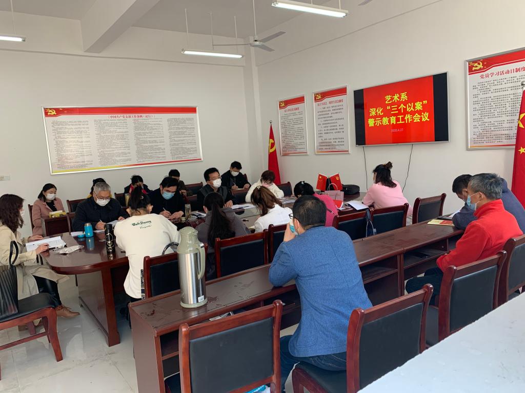 4月27日下午,艺术系党总支在党员活动室召开了深化“三个以案”警示教育工作会议,全系党员及入党积极分子参加了学习,会议由艺术系党总支书记杨孝富主持。