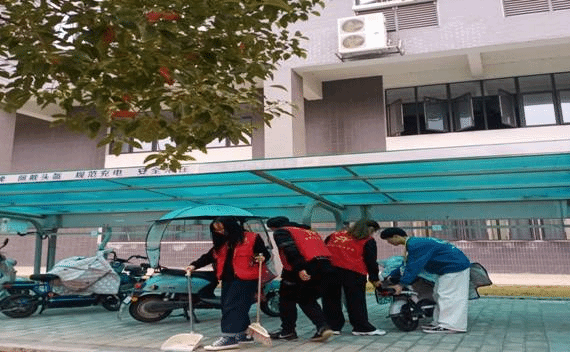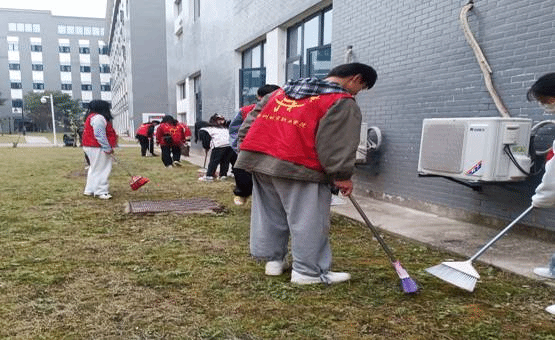 活动中,身着红马甲的志愿者们发扬不怕苦、不怕脏、不怕累的精神,用扫帚有效清理了车棚、墙角边 、草坪和路边等地方的垃圾、烟头,清除杂草。整个清扫过程中,大家分工明确 ,相互协作,认真仔细,不仅促进了志愿者们之间团结合作,而且营造了一个整洁舒适的学习氛围与生活环境 。