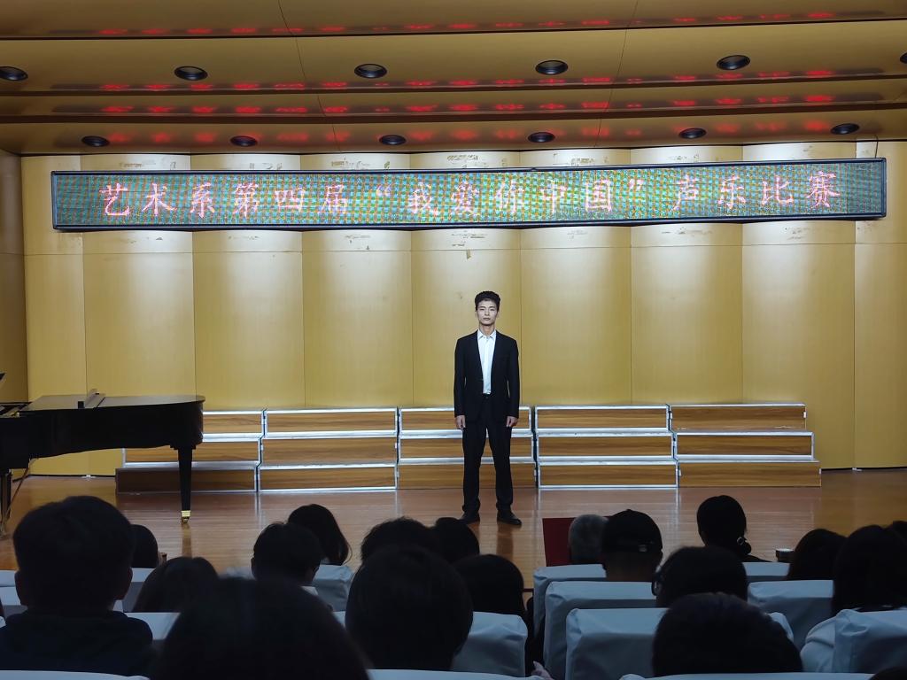 为提高学生的艺术实践能力,弘扬爱国精神,重温红色经典,丰富校园文化生活,艺术系于10月20日晚19:00在音乐厅举办了艺术系第四届“我爱你中国”声乐比赛。