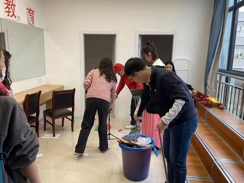 为持续推进校园文明建设,营造良好的工作和生活环境,增强教职工环保意识,发挥党员的先锋模范作用和支部战斗堡垒作用。2022年3月16日下午,艺术与传媒学院党总支开展志愿服务活动,组织学生党支部全体党员来到艺术与传媒学院卫生区捡拾垃圾,并且组织教工支部全体成员到音乐厅打扫卫生。