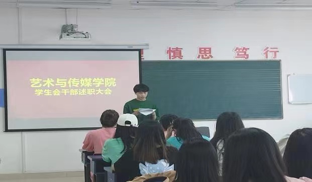 为了提高学生干部履职能力,提升自身综合素质,2022年6月8日下午,在c4音乐楼406教室,艺术与传媒学院举行学生会干部年度述职大会。会议由学院团总支书记李芳主持,学院党总支副书记汪勇、教师周桐羽及全体学生会干部、青年志愿者参加了会议。