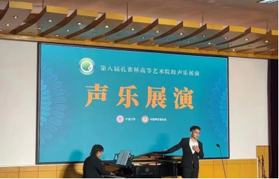 8月9日至8月15日 ,第八届“孔雀杯”高等艺术院校声乐展演暨第六届高校声乐学术交流活动在宁波大学举行。我院由两名教师和一名学生参加本次“孔雀杯”的展演,2021级音乐表演专业邹宇哲同学进入总展演,并获得高职高专院校学生民族组优秀奖。