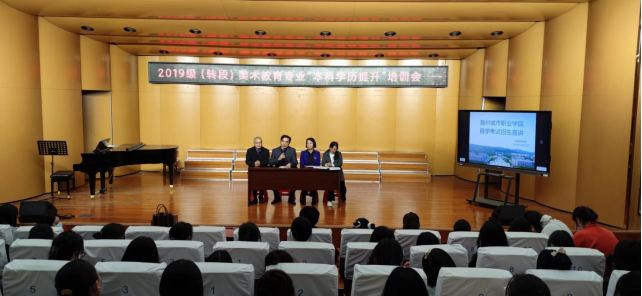 2022年10月26日下午,我院在音乐厅举行2019级(转段)美术教育专业“本科学历提升”培训会。会议由院长钱中宝主持,出席本次活动的有学校继续教育学院院长许梅、艺术与传媒学院党总支副书记汪勇、美术教育专业负责人刘晓玲老师。