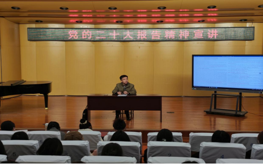 新思想引领新时代,新使命开启新征程。为了深入学习贯彻党的二十大精神,2022年12月1日下午,在音乐厅,艺术与传媒学院学生党支部举行学习宣传贯彻党的二十大精神专题讲座。讲座由艺术与传媒学院党总支书记杨孝富主讲,学生党员和入党积极分子参加了报告会。