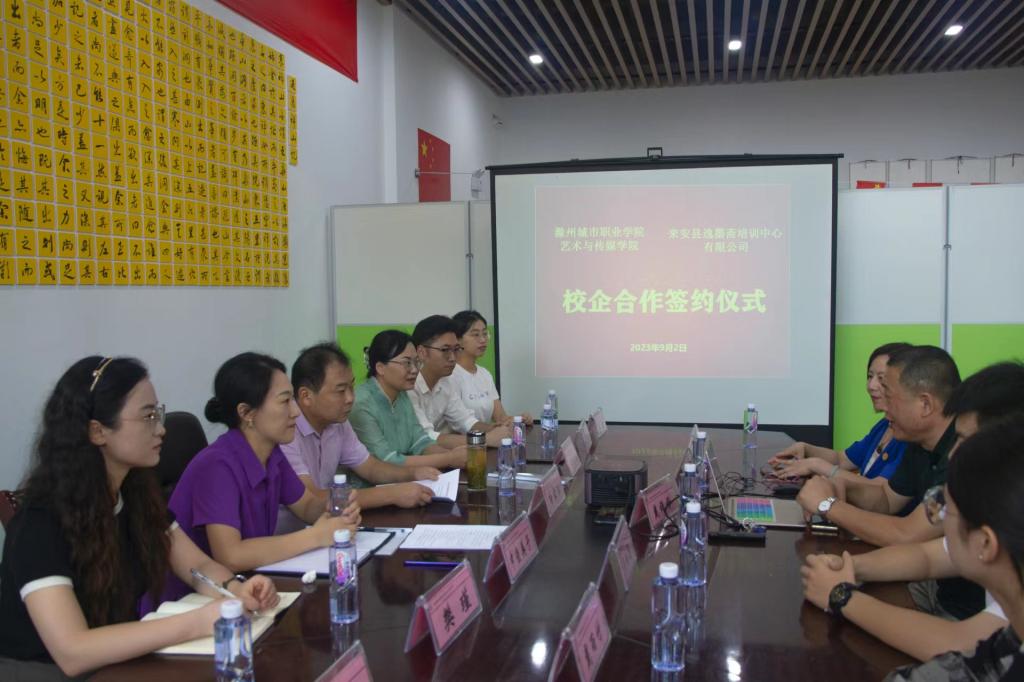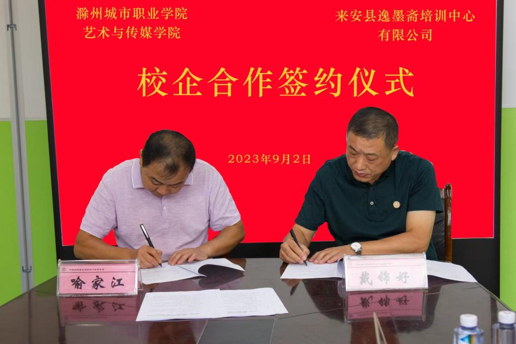 为了提高教师专业水平及大学生的专业实践能力,更好的加强校企合作,共同培养专业技术型人才,2023年9月2日,由我院喻家江副院长、美术系主任刘晓玲、设计系主任申佳美子一行与滁州市来安县新安书画院、逸墨斋培训中心签订合作共建:优秀传统文化研习基地、“双师型”教师培训(实践)基地的合作协议,并举行了授牌仪式。部分青年教师参加了活动。