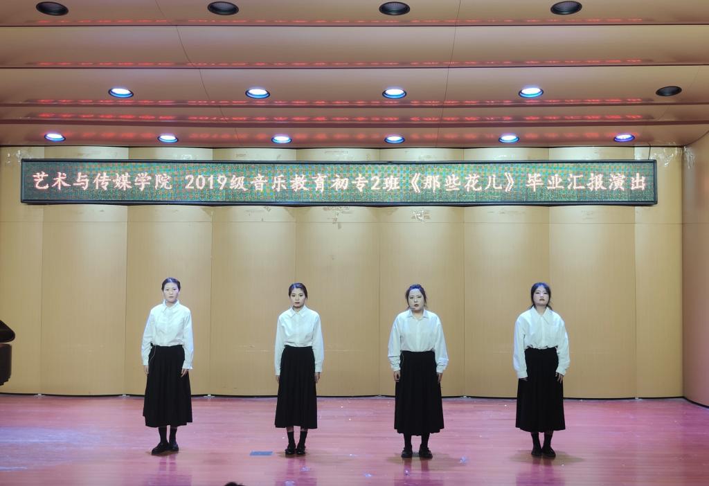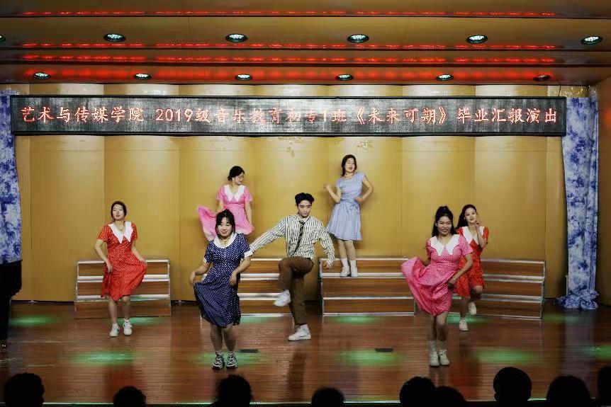 为了集中展示大学生专业学习成果, 不断提升音乐专业教学质量,2023年12月20日和21日,艺术与传媒学院音乐系在音乐厅举办了2019级音乐教育初专1班、2班学生毕业汇报演出。学院党总支书记杨孝富、副书记院长钱中宝、副书记汪勇、副院长喻家江、宗睿,以及音乐系全体教师和学生,共同观看了汇报演出。