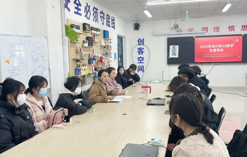 为了落实立德树人根本任务,发挥“党建+专业服务”引领作用,2024年1月15日,艺术与传媒学院教工第三党支部在C2南5楼504教室,举行设计系学生代表座谈会,旨在了解学生对于教学过程和课程安排等方面的意见和建议。设计系各年级的学生代表参与讨论,共同探讨如何提升教学质量和满足学生的学习需求。会议由教工第三党支部副书记、设计系主任申佳美子主持。