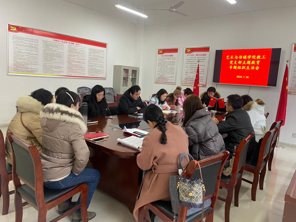 根据学校关于召开主题教育专题组织生活会的要求,经过充分准备,艺术与传媒学院教工党支部于1月26日下午,在党员活动室召开主题教育专题组织生活会。会议由教工党支部书记宗睿主持。艺术传媒学院党总支书记杨孝富到会指导。