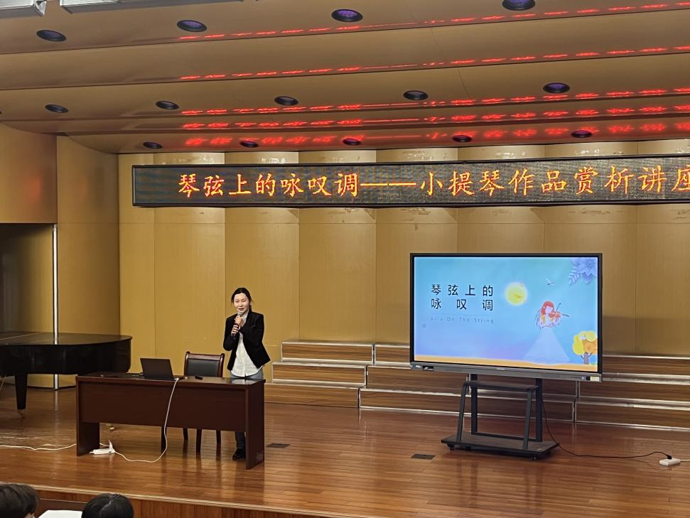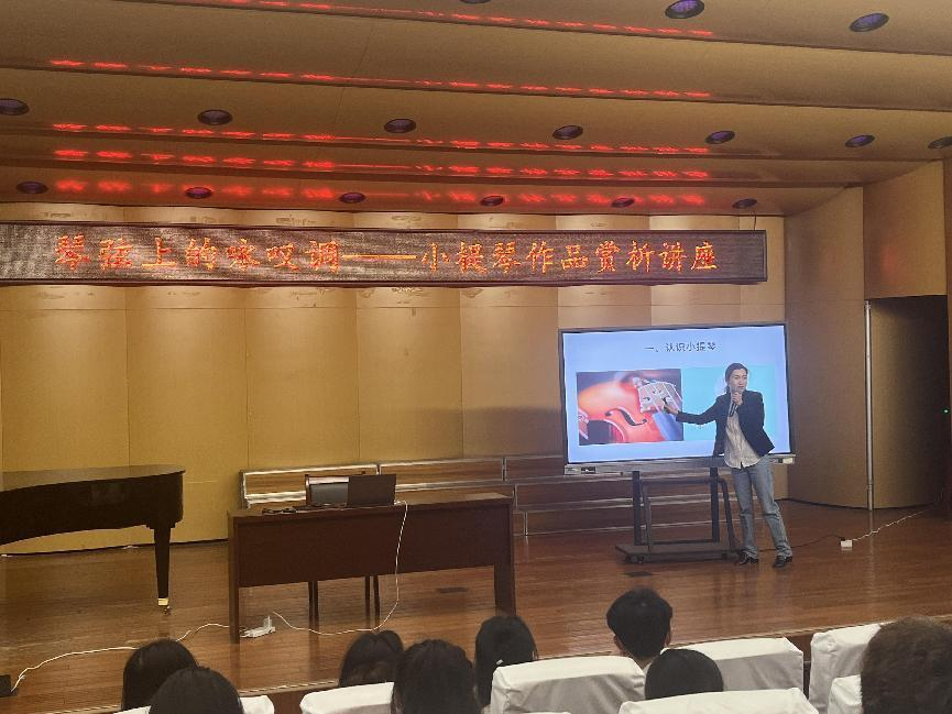 为拓宽艺术与传媒学院学生的艺术视野,提高学生的审美能力,4月13日晚7点,音乐系主任宗睿副教授在校音乐厅举办了“琴弦上的咏叹调——小提琴作品赏析”普及讲座。艺术与传媒学院音乐教育、音乐表演等专业学生聆听了此次讲座。