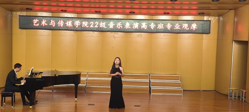 他们在专业老师的指导下,2022级和2023级音乐教育、音乐表演两个专业的在校生进行了声乐、钢琴、乐器的舞台展示。