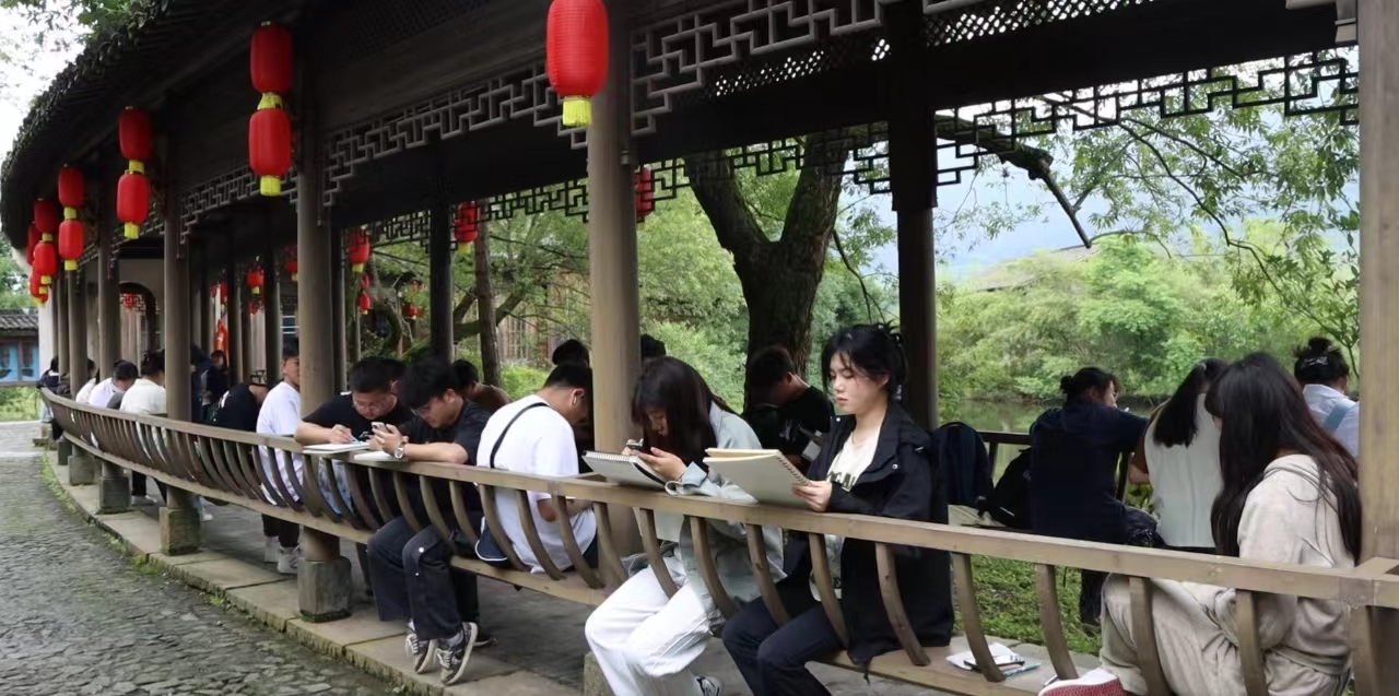 守拙园,一个充满徽州古韵的地方,它的一砖一瓦都仿佛在诉说着历史的沧桑。在这里,师生们用画笔仔细描绘一砖一瓦、一草一木,亲身感受到水墨徽州的历史韵味,深刻体验了安徽丰富的红色文化,重温了宝贵的红色历史记忆。
