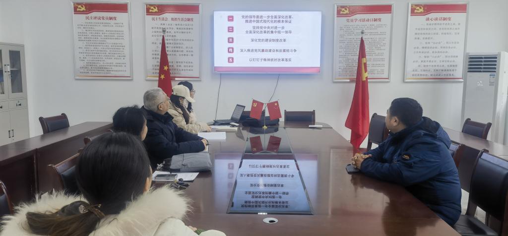 会议第二部分,在贲蕾同志的带领下,党员们共同观看了由中央党校(国家行政学院)党的建设教研部副主任祝灵君教授讲解的题为《加强党对进一步全面深化改革的领导》的视频,该视频充分彰显了以习近平同志为核心的党中央将改革进行到底的坚强决心和强烈使命担当,改革不是一句空话,而是实实在在的行动,是党和国家在新时代新征程上推动中国式现代化的关键一招。