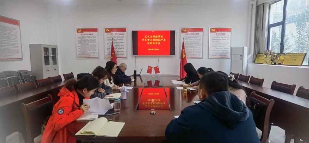 3月10日下午,艺术与传媒学院学生党支部在党员活动室召开2024年度组织生活会,全体党员同志参加会议。会议由学生党支部书记贲蕾主持。