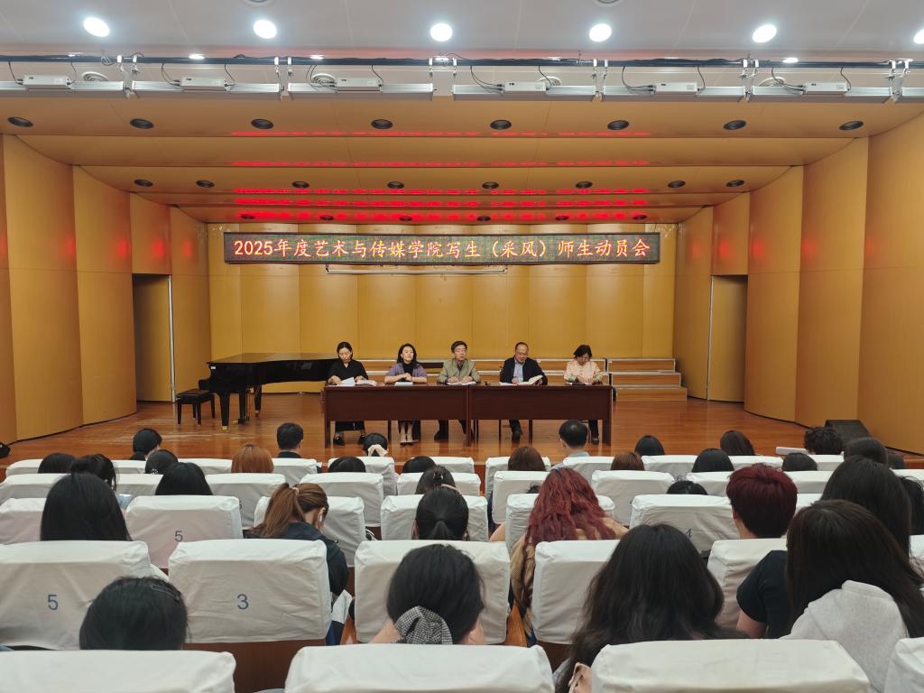 为深化落实实践教学,提升师生教学与艺术创作能力,艺术与传媒学院组织设计系、美术系师生赴黄山黟县屏山村开展为期10天的写生(采风)活动。5月6日上午,在学院音乐厅召开2025年度写生(采风)师生动员会,学院党总支书记杨孝富、院长孙宝斌就活动进行动员,强调教学、安全、统筹等重点事项,会议由副院长申佳美子主持。