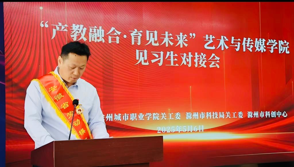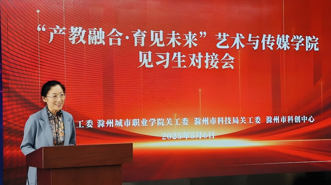 2025年5月6日下午,以“产教融合 育见未来”为主题的大学生见习对接会在滁州市科创中心报告厅隆重举行。本次活动由滁州市关工委、滁州城市职业学院关工委、滁州市科技局关工委、滁州市科创中心、滁州城市职业学院艺术与传媒学院联合举办,搭建起校企合作的坚实桥梁,为深化产教融合、促进人才培养与企业需求精准对接提供了重要平台。