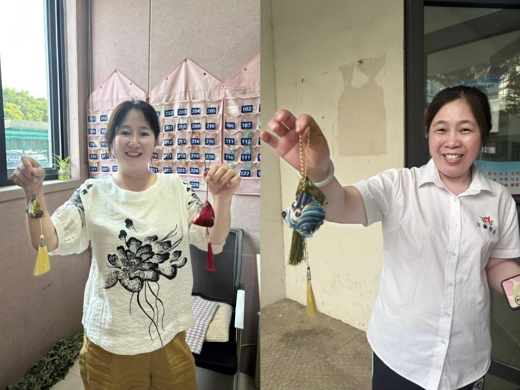 制作完成后,同学们带着这些承载着心意的艾草包,怀着敬意将它们送到学生公寓宿管阿姨们手中,宿管阿姨们脸上洋溢着幸福的笑容。她们表示,这些艾草包不仅带来了节日氛围,更让她们感受到了同学们爱心。