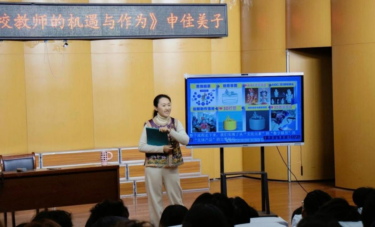 2025 年 12 月 12 日,一场以 “破界・共生・焕新 —— 数智时代高校教师的机遇与作为” 为主题的专题分享会顺利举行,分享人艺术与传媒学院副院长、设计系主任申佳美子,讲座中围绕数智浪潮下教师的成长方向与实践路径展开深度交流,为在场教育工作者与学生带来了兼具思想性与实操性的分享盛宴。