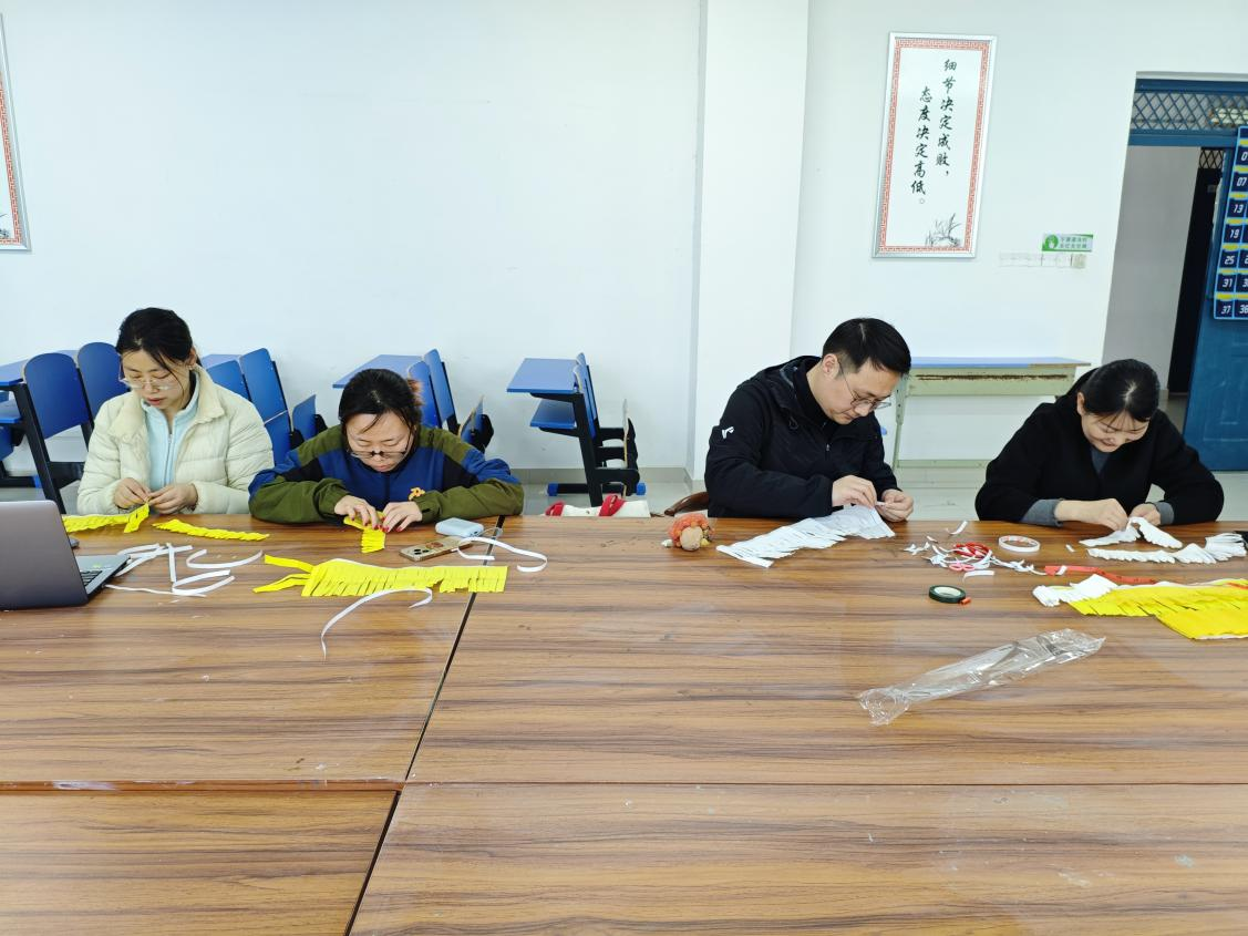 “每一层花瓣的褶皱都要自然舒展,就像我们对先烈的感情,要真挚而深沉。”王荣荣书记边示范边讲解。支部教师们将美术课堂搬进党建活动室,把专业技能与党性教育深度融合,让师生在动手实践中感悟传统祭祀文化的当代转化,用艺术创作承载对英烈的追思。经过数小时的精心制作,数朵手工菊花汇聚成束,承载着第二党支部全体师生的敬意与缅怀。