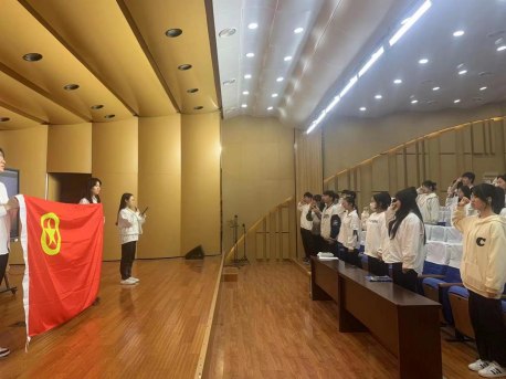 仪式在庄严的国歌声中拉开序幕,全体同学齐唱团歌。随后,新团员在赵胜楠的带领下,面对团旗,握拳举起右手,庄严宣誓“我志愿加入中国共产主义青年团,遵守党的章程……”,慷慨激昂的宣誓回荡在每个团员的耳畔。此次通过奏唱国歌、团员宣誓、宣读《中国共产主义青年团章程》、团组织负责人发言等内容,激发了每位团员青年光荣感和责任感,坚定了高举团旗跟党走信念,以更加昂扬精神面貌,学习践行党的二十大精神。