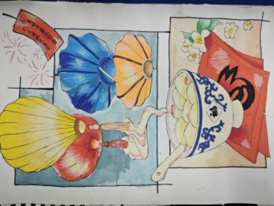 此次活动中,同学们用画笔描绘出了一幅幅精美的画作,展现了他们独特的艺术风格和创意。作品种类繁多,不乏一些颇具创意的跨界作品。这些画作以双节为主题,将传统元素与现代手法巧妙地结合在一起,展现出了同学们对中华传统文化的热爱和传承。本次主题绘画比赛不仅提高了同学们的艺术水平和创作能力,也为学生提供了一个展示艺术与才华的平台。通过参与绘画过程,同学们可以更加深入地了解了中华传统文化,增强了对传统节日的情感认同!