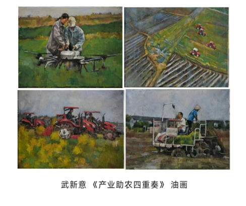 我院2019级美术教育专业初专1班武新意同学的作品《乡村四重奏》、2022级美术教育高专2班刘昊邦同学的作品《武康大楼》;李巍老师的作品《文明传递》、刘念老师的作品《大别山春雨行》入展。