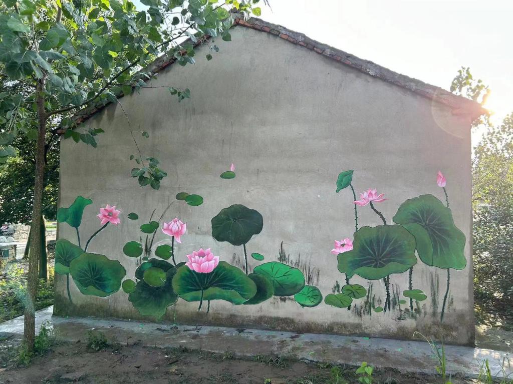 在当地村干部指导下,美化乡村服务队仔细观察了需要绘制墙绘的周边情况,确定绘图的内容和风格,设计出了一幅幅墙面绘制方案。