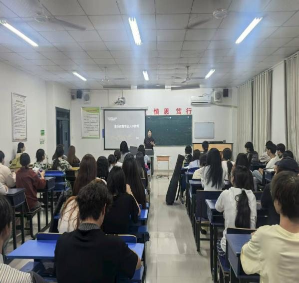 为助力音乐系新生快速融入大学生活、锚定专业发展方向,9月10日晚七点,我院于艺馨楼406教室精心举办新生入学教育专题活动。本次活动由音乐系主任霍雪娇、副主任潘瑶联袂主持,25级辅导员及全体音乐专业新生齐聚一堂,现场氛围热烈温馨,满溢着艺术教育的人文温度。