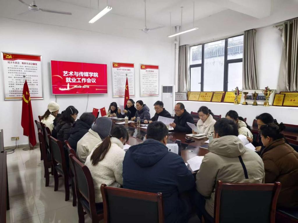 为贯彻落实教育部《关于开展2026届高校毕业生“寒假促就业暖心行动”的通知》精神,扎实推进学院就业工作提质增效,1月27日上午,艺术与传媒学院在党员活动室召开寒假促就业工作会议。学院领导班子成员,各系主任、专业负责人及26届毕业班辅导员与班主任参加会议。会议由党总支副书记陈之娟主持。