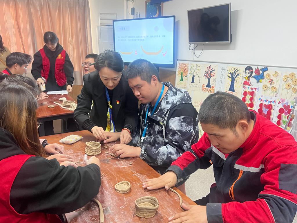 首先,捏土环节中,艺术与传媒学院师生们与自闭症少年一起动手制作泥条作品。在指导老师帮助下,孩子们通过捏、揉、压等动作,将手中的泥条塑造成各种形状,不仅锻炼了他们的动手能力,也激发了他们的创造力和想象力。捏土活动结束后,孩子们自豪地展示了自己的作品,脸上洋溢着满足和快乐。