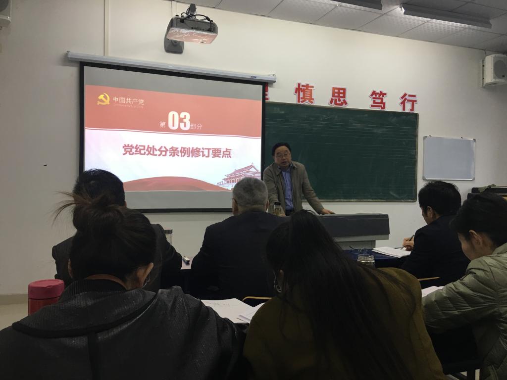 为了加强党员纪律教育,进一步严明政治纪律和政治规矩,11月1日下午,院纪委书记程一斌围绕新修订的《中国共产党纪律处分条例》,为艺术系全体党员及入党积极分子上了一堂生动的党课。