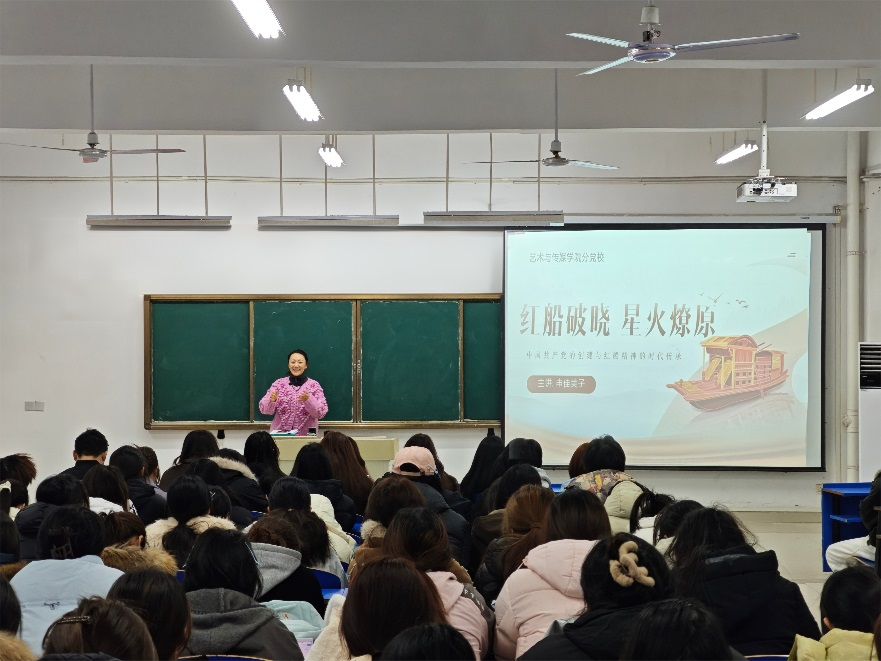 动员会后,艺术与传媒学院党总支宣传委员、副院长申佳美子开展“中国共产党的创建与红船精神的时代传承”专题党课。她从中共一大的历史征程切入,系统阐释了“开天辟地、敢为人先的首创精神,坚定理想、百折不挠的奋斗精神,立党为公、忠诚为民的奉献精神”的红船精神内核,并结合新时代青年使命,引导学员从红色基因中汲取奋进力量,在学思践悟中坚定入党初心。当日下午,学生党支部纪检委员李菲组织学员观看《榜样9》专题片,通过党员先进事迹诠释初心使命,为学员带来深刻思想洗礼。