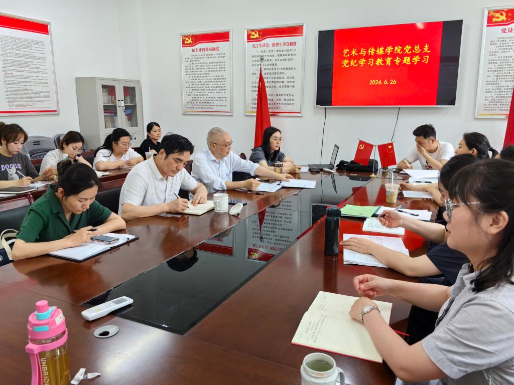 持续开展专题学习。为了持续加强党的纪律建设,推动全面从严治党向纵深发展,艺术与传媒学院党总支带领全体党员同志,通过“三会一课”、政治理论学习等方式深入学习贯彻习近平新时代中国特色社会主义思想、《中国共产党纪律处分条例》《习近平总书记关于生态文明建设的论述摘编》等内容,进一步引导全体党员“学纪、知纪、明纪、守纪”,激励全体党员始终跟党走、报党恩,守初心、担使命。