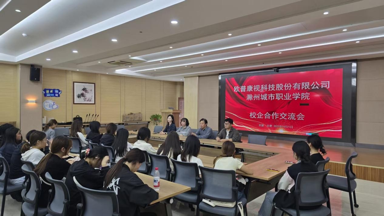 欧普康视技术中心王淮庆副总监在座谈会上表示,企业高度重视与滁州城市职业学院的合作,眼视光行业对高素质技能人才的需求迫切,公司愿意充分发挥产业资源优势,为微专业学生提供优质的实习实践平台、专业的技术指导,通过“校企共研课程、共带实践”的模式,共同培养符合行业岗位需求的实用型、技能型人才,实现校企“双赢”。