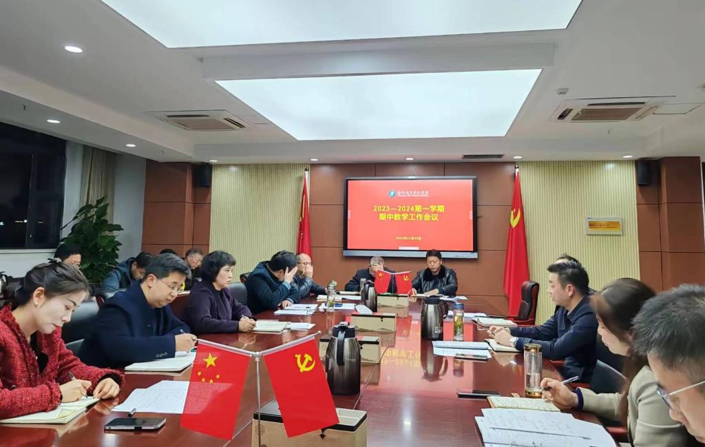 11月23日下午,学校在第四会议室召开了2023-2024学年第一学期期中教学工作会议。校党委副书记、校长汪上出席了会议,校党委委员、副校长曹士东,校党委委员、副校长吴惠珍,质量管理中心、教务处、学生处、各教学院(部)负责人及各教学院(部)教学督导组组长参加了会议,会议由曹士东主持。