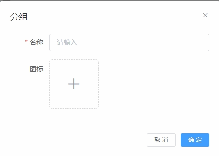 点击“+”按钮,会弹出新增分组的弹框,输入名称和图标确定即可新增一条维度数据。