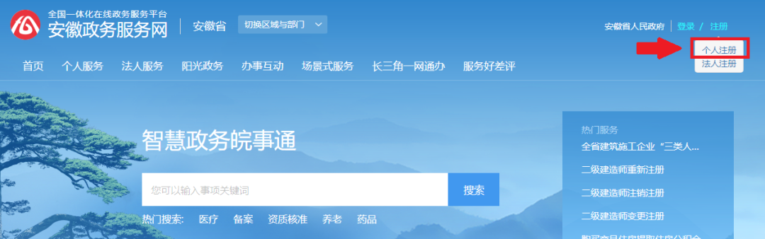 1. 点击页面右上角“注册”——“个人注册”: