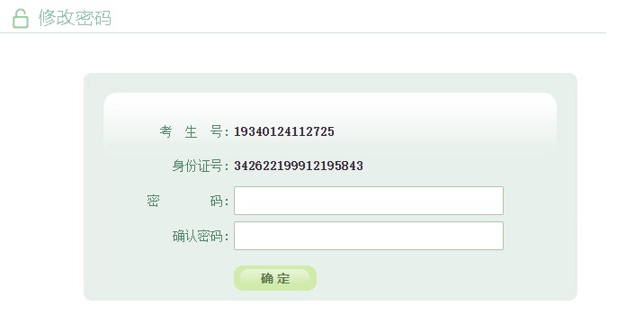 输入身份证号,点击“发送短信验证码”按钮后,系统会随机发送6位数字验证码至考生报名时所填的手机号上(即在安徽政务服务网上注册时填写的手机号码);填写完短信验证码,点击“确定”,跳转至考生修改密码页面,设置考生登录密码。短信验证码只能发送5次,请勿短时间重复发送验证码。