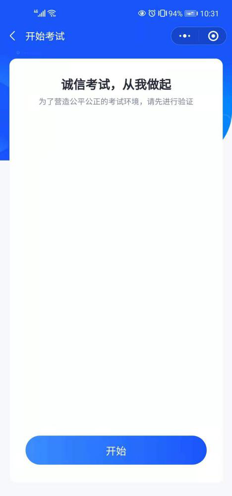 (7)点击开始后,会进入拍照识别阶段,此时需要把手机摄像头对准自己,或者进行自拍,验证通过后开始答题