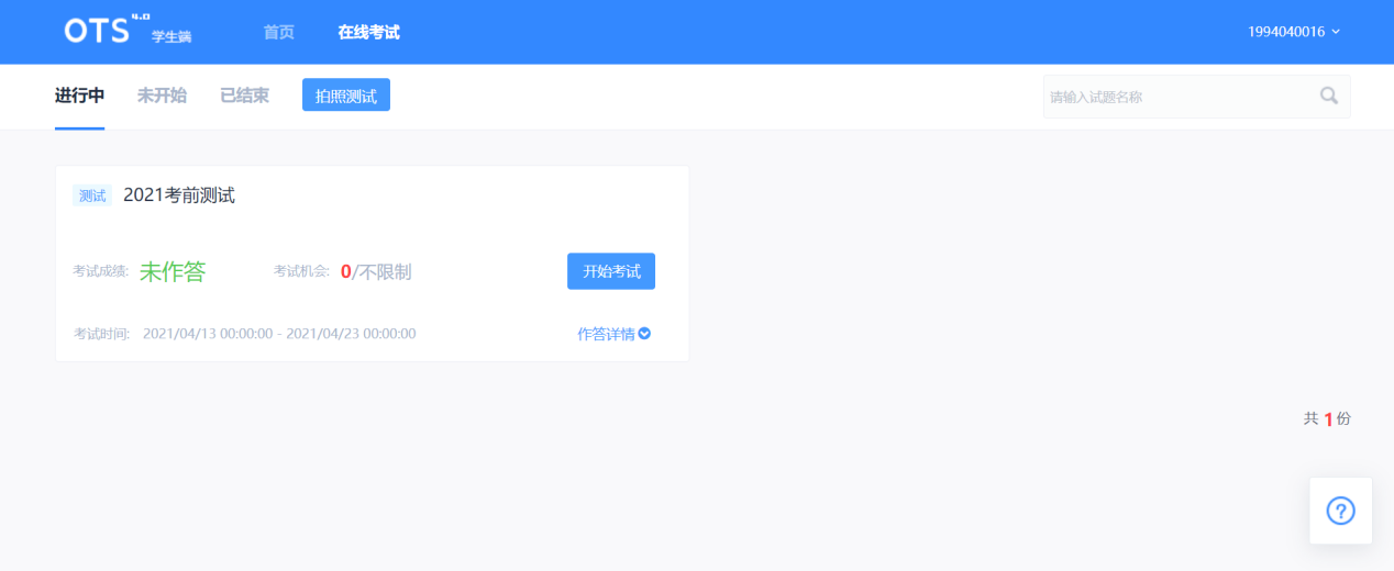 (2)点击在线考试,未开始,可以看到将要进行的考试。