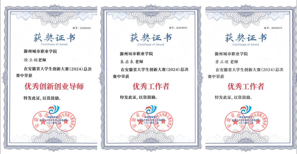 近日,安徽省大学生创新大赛(2024)暨中国国际大学生创新大赛(2024)安徽赛区获奖名单公布。总决赛中,学校取得了1项金奖、1项银奖和23项铜奖的好成绩,荣获优秀组织奖,1位教师获优秀创新创业导师奖,2位老师被评为大赛优秀工作者。