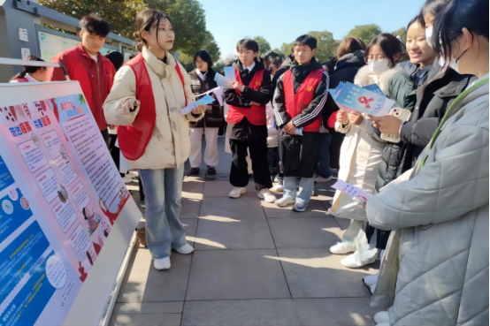 学生社团和志愿者通过展板展示与发放折页的方式,向同学们详细讲解怎样预防,充分发挥了志愿者作用,持续加强青年学生预防艾滋病和结核病健康宣传教育。