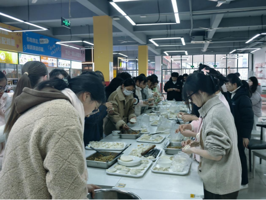 冬至阳生,岁回律转。为传承中华优秀传统民俗文化,丰富师生校园文化生活,搭建后勤育人平台,12月19日中午,我校食堂内暖意融融,“冬至包饺子”主题实践活动在此温情启幕。校党委委员、副校长孙静,校党委委员、学生处处长杨如江,总务处处长蒋峰走进师生中间,与100余名学生代表齐聚一堂,以饺为媒共话团圆,以劳育心赋能成长,让冬日校园充满别样暖意。