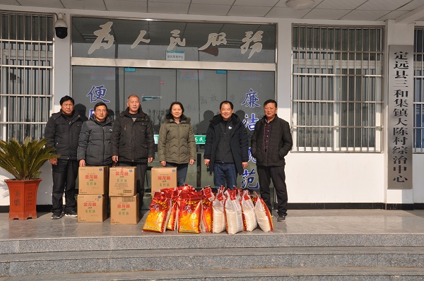 春节前夕,1月17日,党委书记米德成、党委副书记牛春雨、党委委员、办公室主任王素明、机关第一党支部书记马琴等一行深入凤阳县红心镇乌罗村、定远县三和集镇大陈村开展走访慰问困难老党员、困难群众和驻村第一书记活动,为他们送去了节前慰问。
