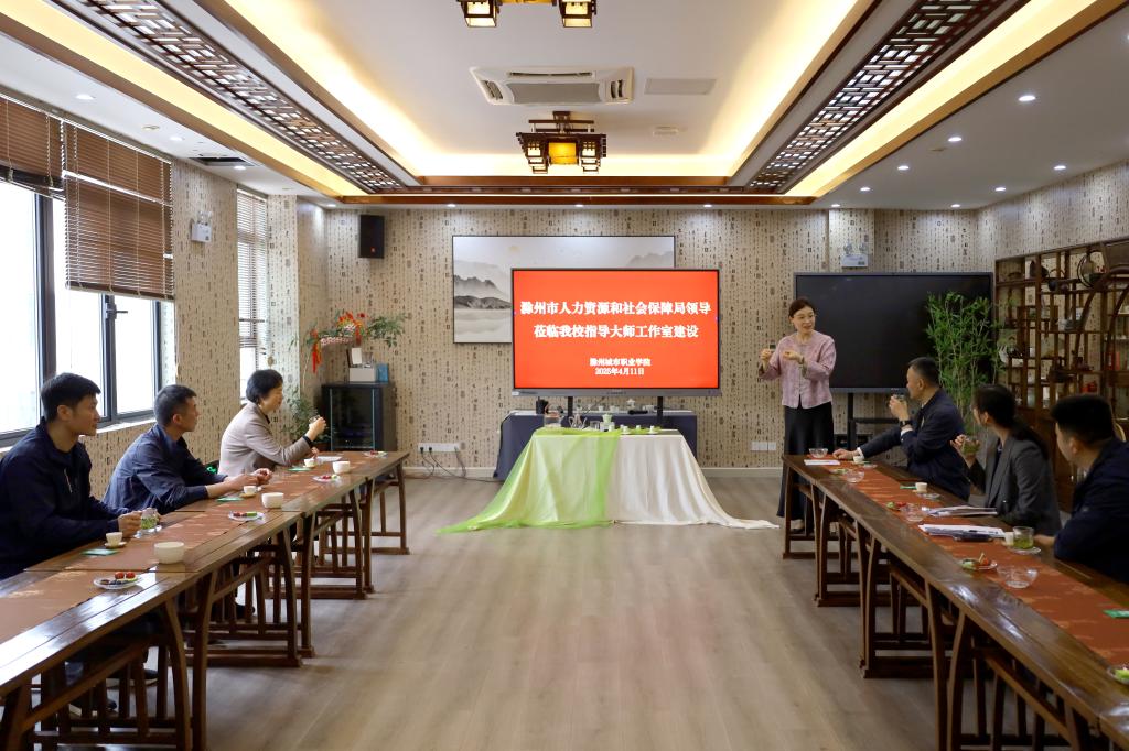 4月11日,滁州市人力资源和社会保障局局长汪国玲一行莅临我校,就大师工作室、技能竞赛及人事相关工作展开调研,校党委书记王燕永,党委委员、组织人事处处长杨莹,相关学院参加调研。